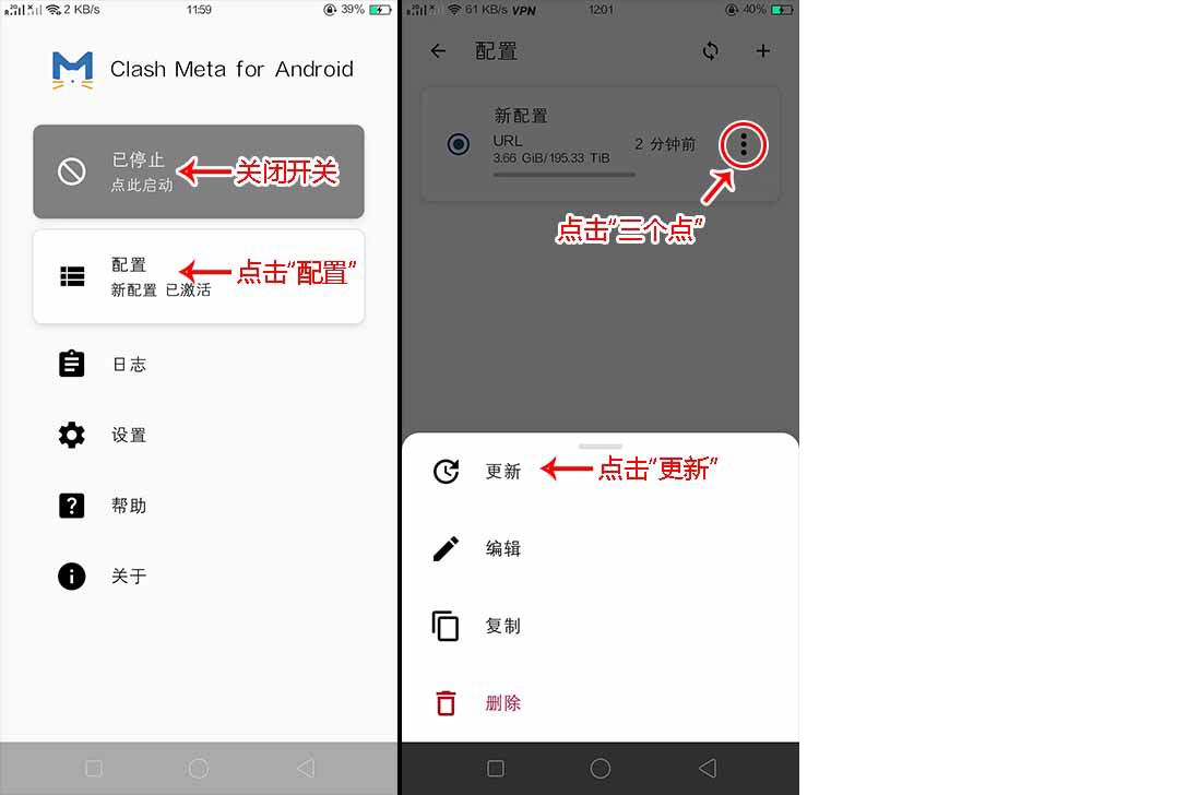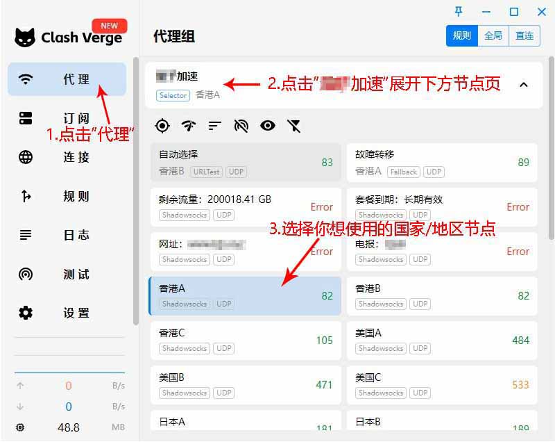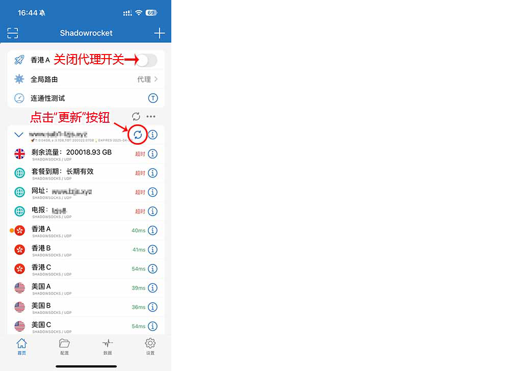 - 若上述过程还无法更新,一般是订阅地址被墙,按上方三、四步骤重新导入订阅地址即可!